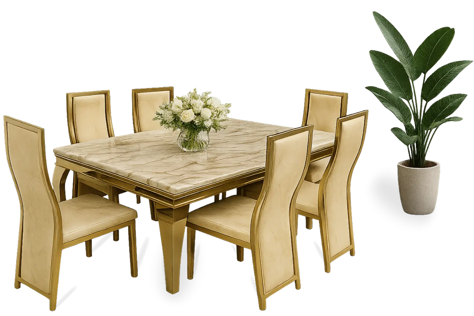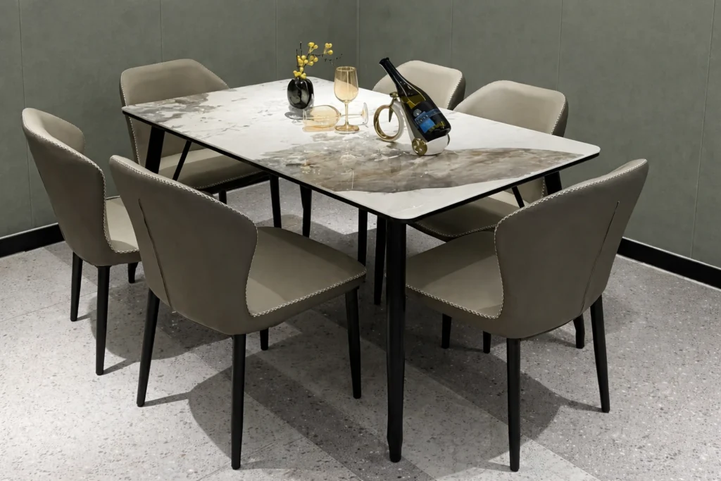 Elevate your dining space with our luxury marble dining table, crafted with premium materials and elegant design.