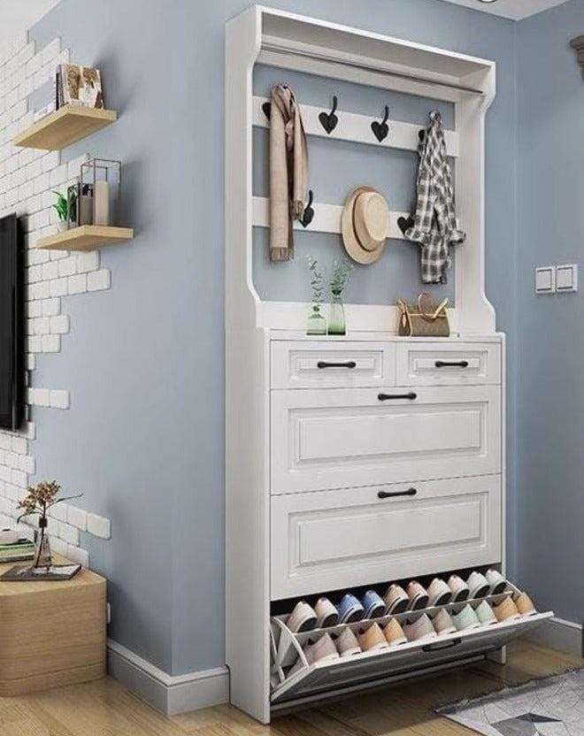 Alba All-in-One Hallway Unit — White Entryway Organiser with Shoe Cabinet, 2 Drawers, Coat Hook Rack & Display Shelf | Complete Entryway Storage UAE