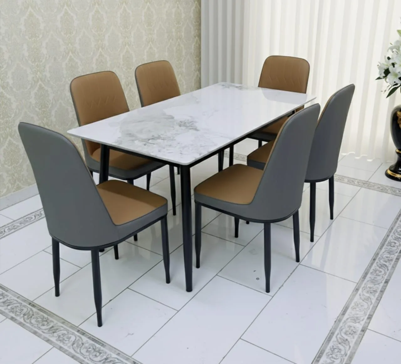 Elevate your dining room with this elegant ceramic top dining table, perfectly suited for modern living in the UAE. Its premium marble-effect ceramic surface is highly resistant to heat stains and scratches making it ideal for everyday family meals and formal occasions.