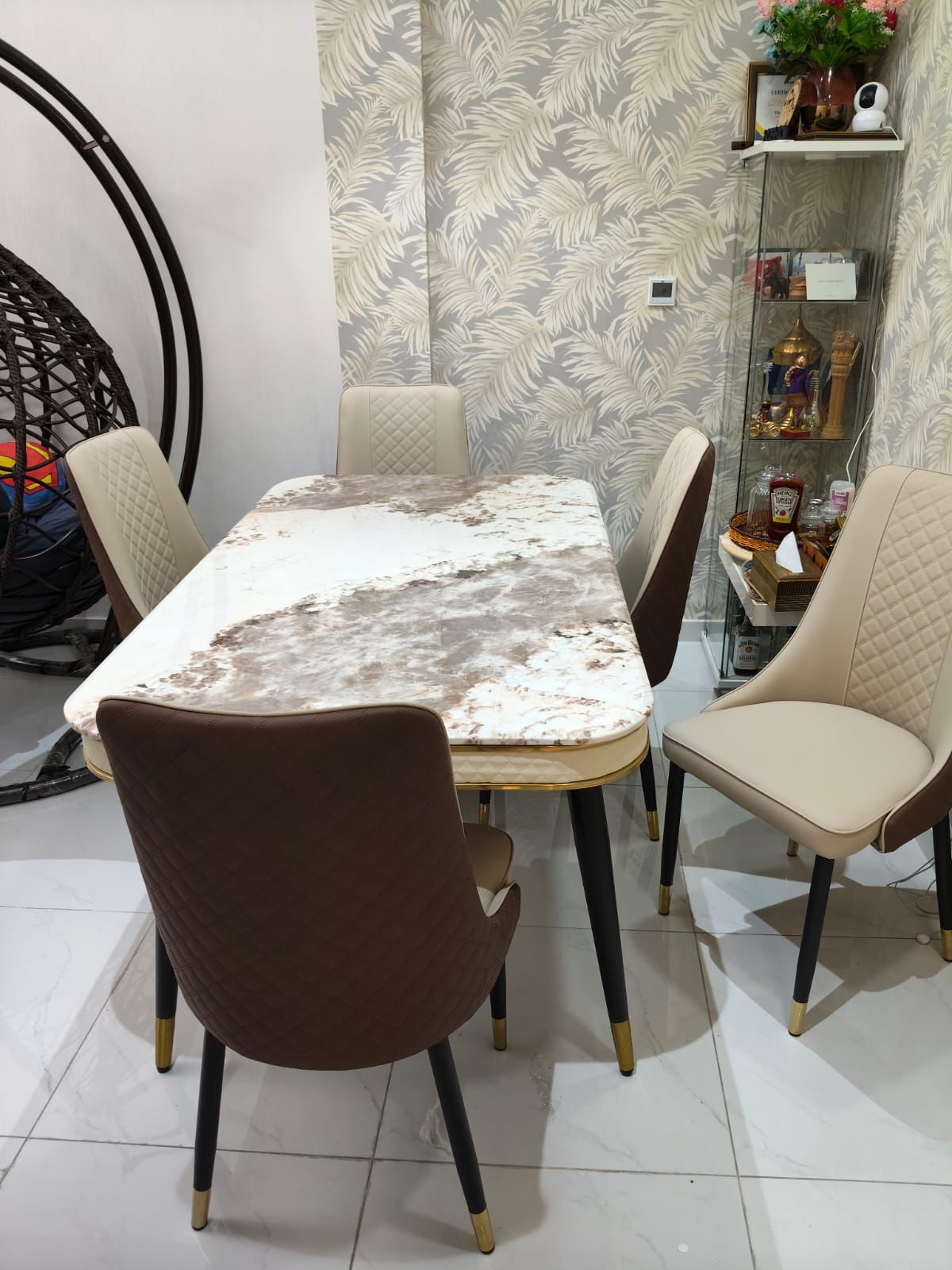 This premium marble top dining table boasts a spacious 160 x 90 cm surface and a height of 75 cm.  It’s a perfect blend of luxury, durability and modern design, making it ideal for apartments and villas in Dubai Abu Dhabi and throughout the UAE.