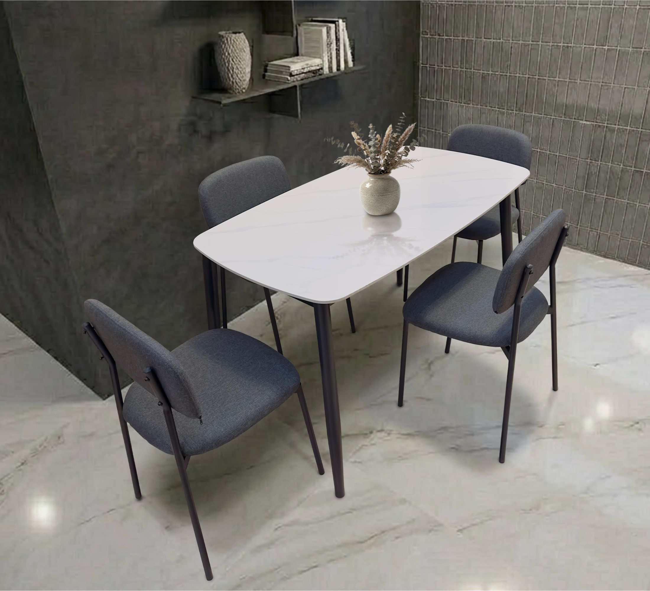 Luxury Grey Ceramic Dining Table Set 4 Seater – Modern Dining Furniture Dubai | Premium Home Furniture UAE